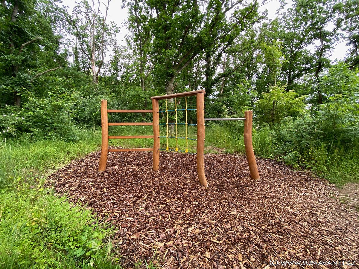 - žebřík, lanová síť a bariéra s otvory pro ruce a nohy slouží pro zdolávání překážek ve vertikální poloze, určeno především pro děti