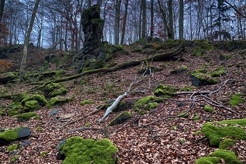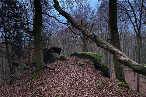 V severní části se nachází výrazná skalka nazývaná Kazatelna českých bratří, která z určitých úhlů připomíná lidskou hlavu. Nedaleko cesty můžete narazit na osamělý skalní útvar zvaný Samohrd.